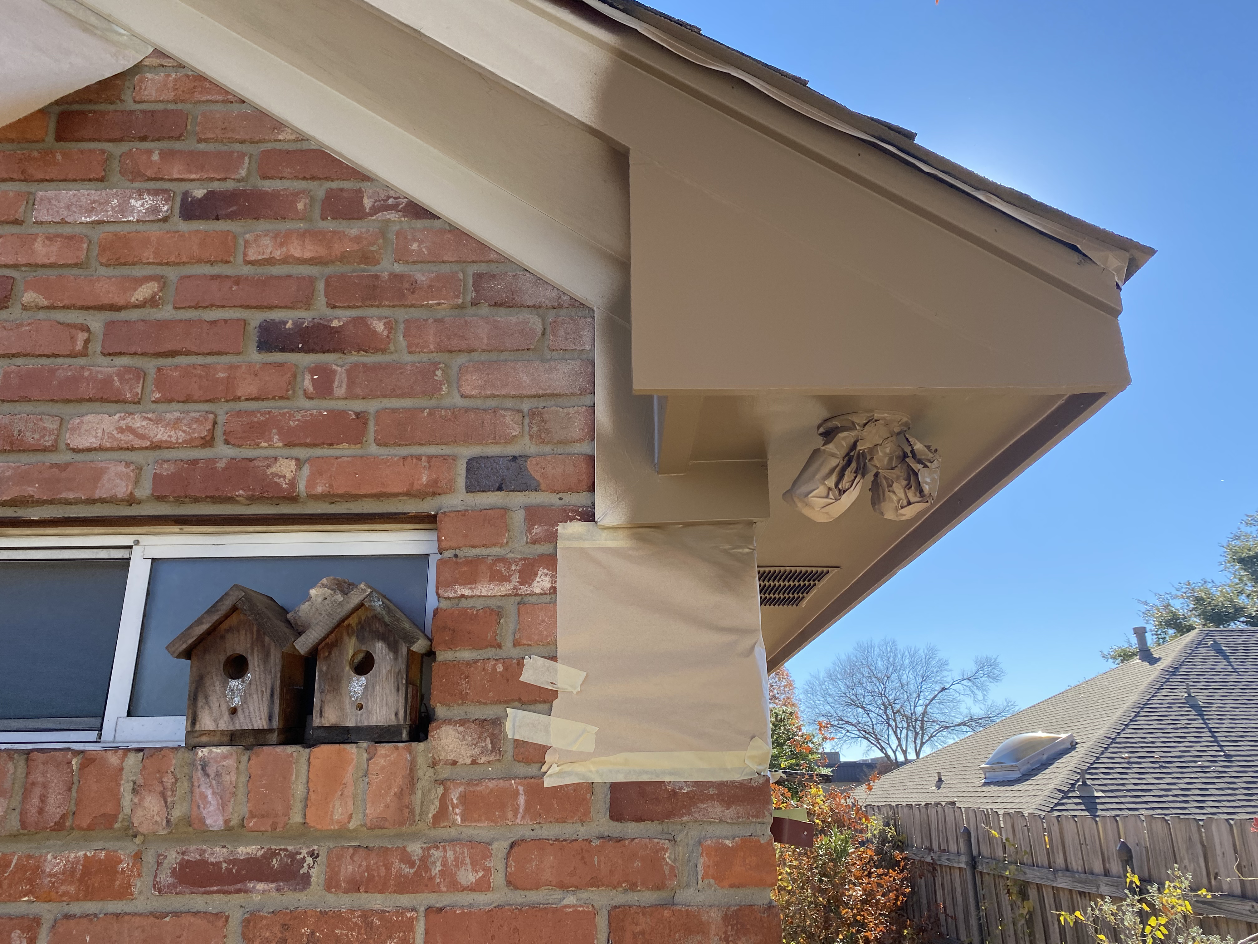 Rotted fascia boards were letting moisture into the roof structure on this Carrollton property. We pulled the old wood, installed new fascia and trim, sealed and painted it to match. Small repairs like this prevent expensive problems down the road — water behind the fascia can destroy rafters and decking if you let it go.